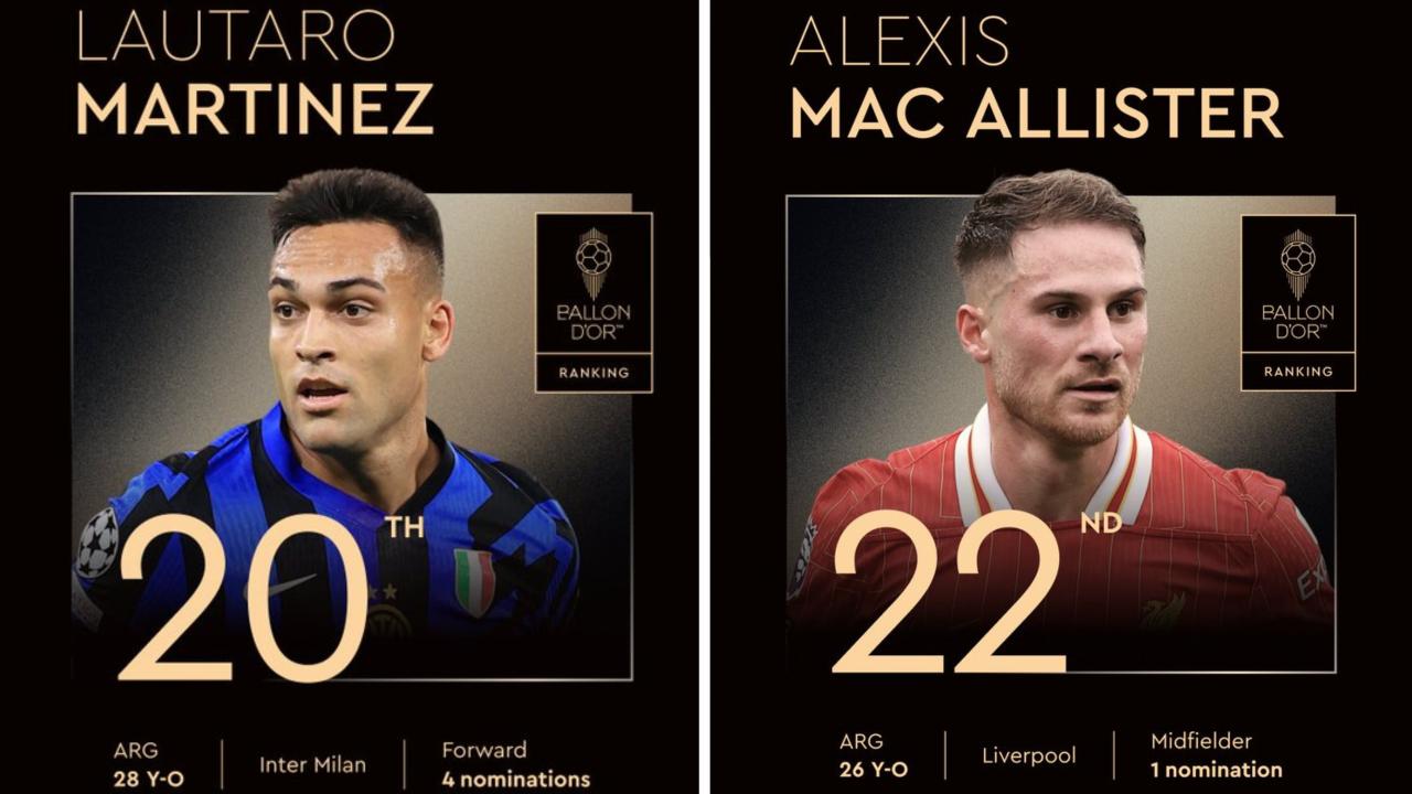 Lautaro Martínez y Alexis Mac Allister en el Top 20 del Balón de Oro 2025